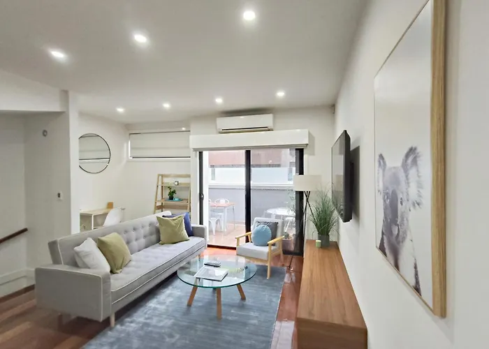 Вилла расположена в 3 км от Парка Фокнер и приблизительно в 4 км от Концертной площадки Palais Theatre. На вилле Вилла Luxury Beachside Townhouse - Walk To Beach - Private Rooftop Terrace комнаты оборудованы балконом, диваном и рабочим столом.